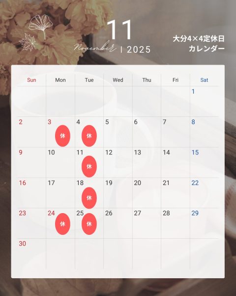 11月の定休日のカレンダーです!📅