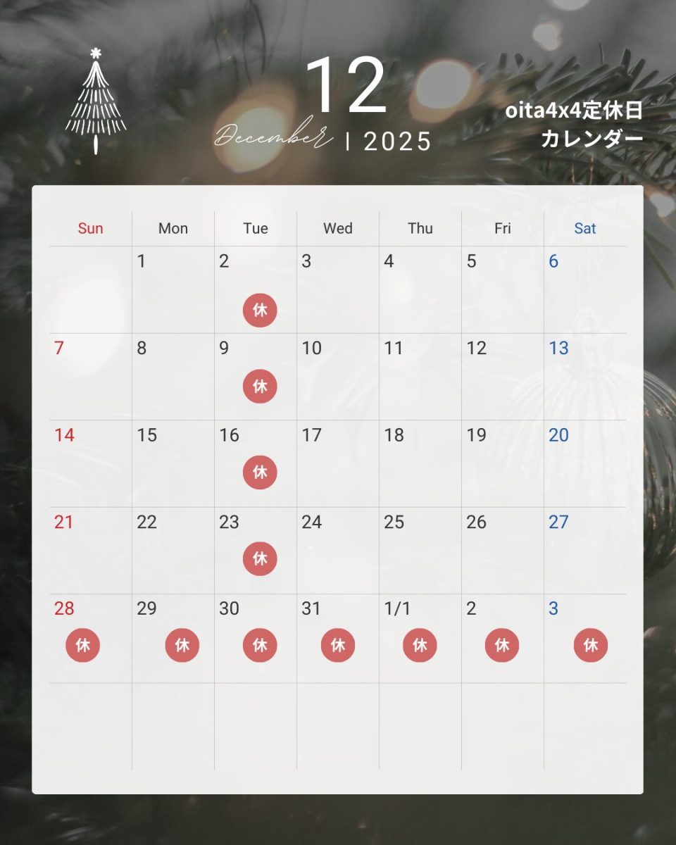 通常通り火曜日定休、12/28(日)〜1/4(日)まで
